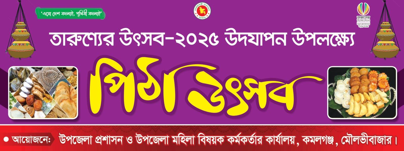 তারুণ্যের উৎসব ২০২৫ উদযাপন উপলক্ষ্যে উপজেলা প্রশাসন ও উপজেলা মহিলা বিষয়ক কর্মকর্তার কার্যালয়, কমলগঞ্জ, মৌলভীবাজার কর্তৃক আয়োজিত “পিঠা উৎসব”